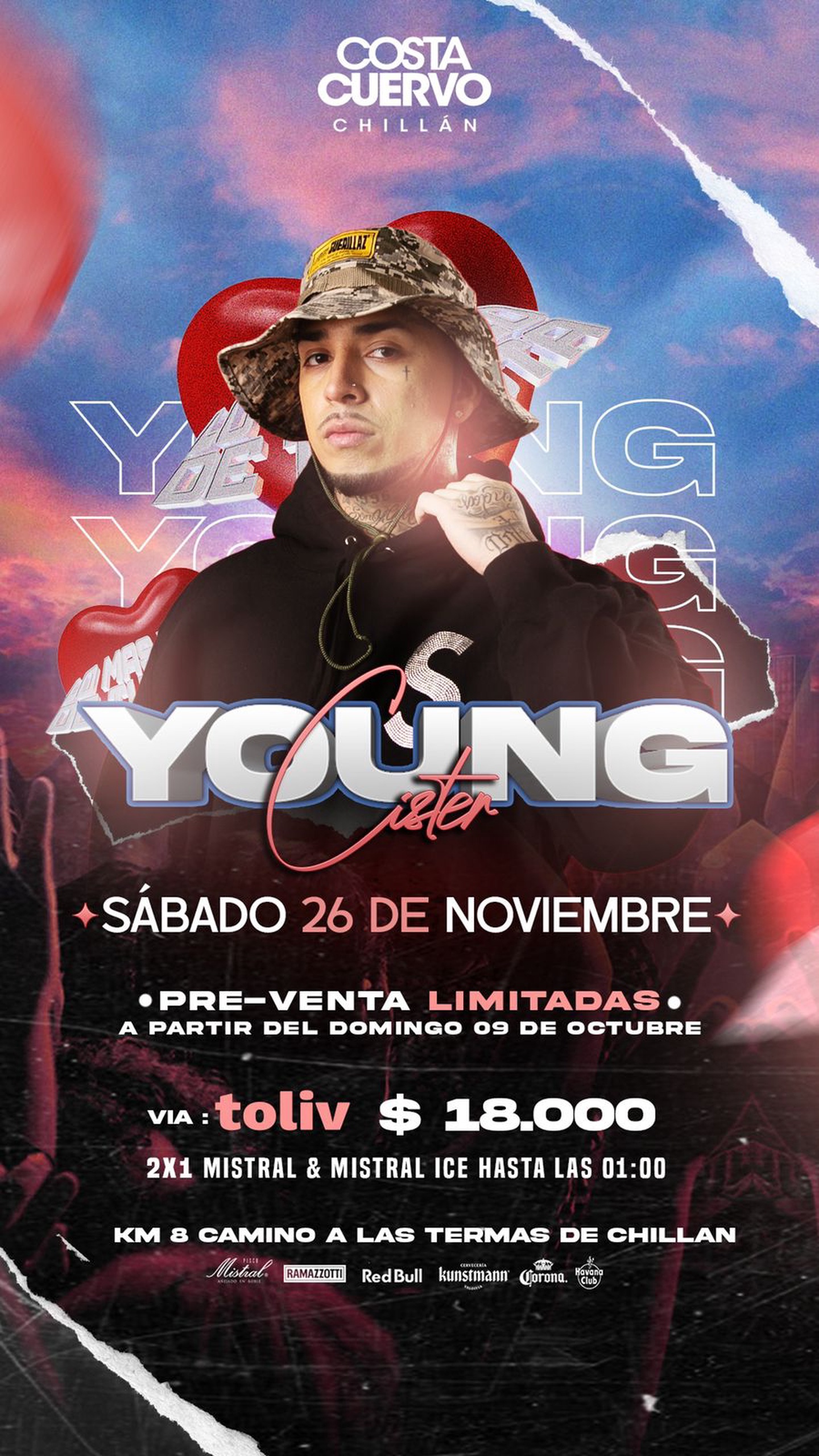 Este Sábado 26 de noviembre se presenta el artista urbano Young Sister en vivo en Costa Cuervo Chillan.